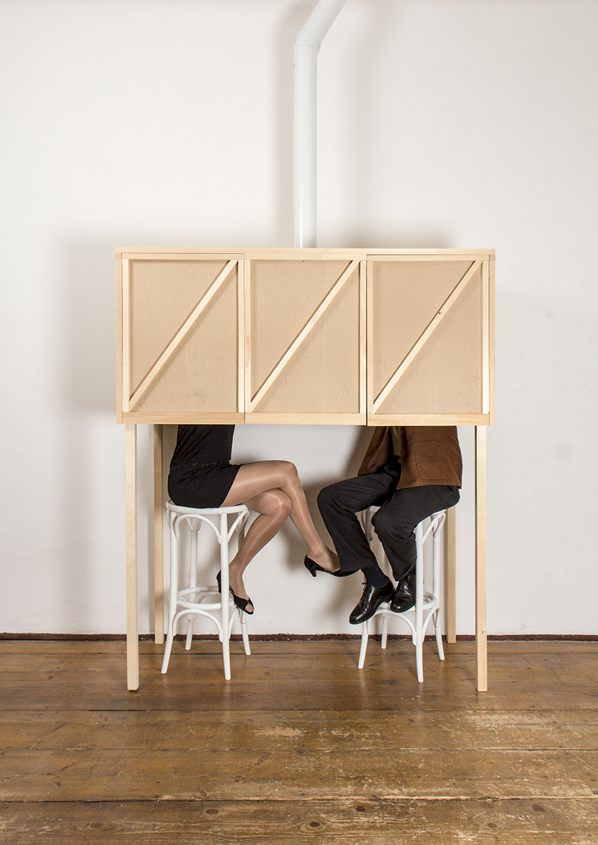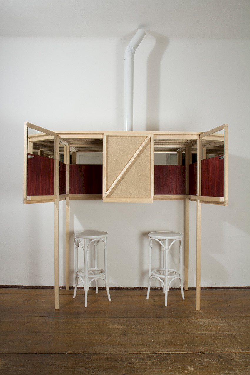 In its dimensions, the Bar Non-Lieu is indeed referring to conventional bar furniture. Its central claim to be a non-place, however, is ultimately obtained by the opportunity to enter the furniture and thus be able to experience it as space.